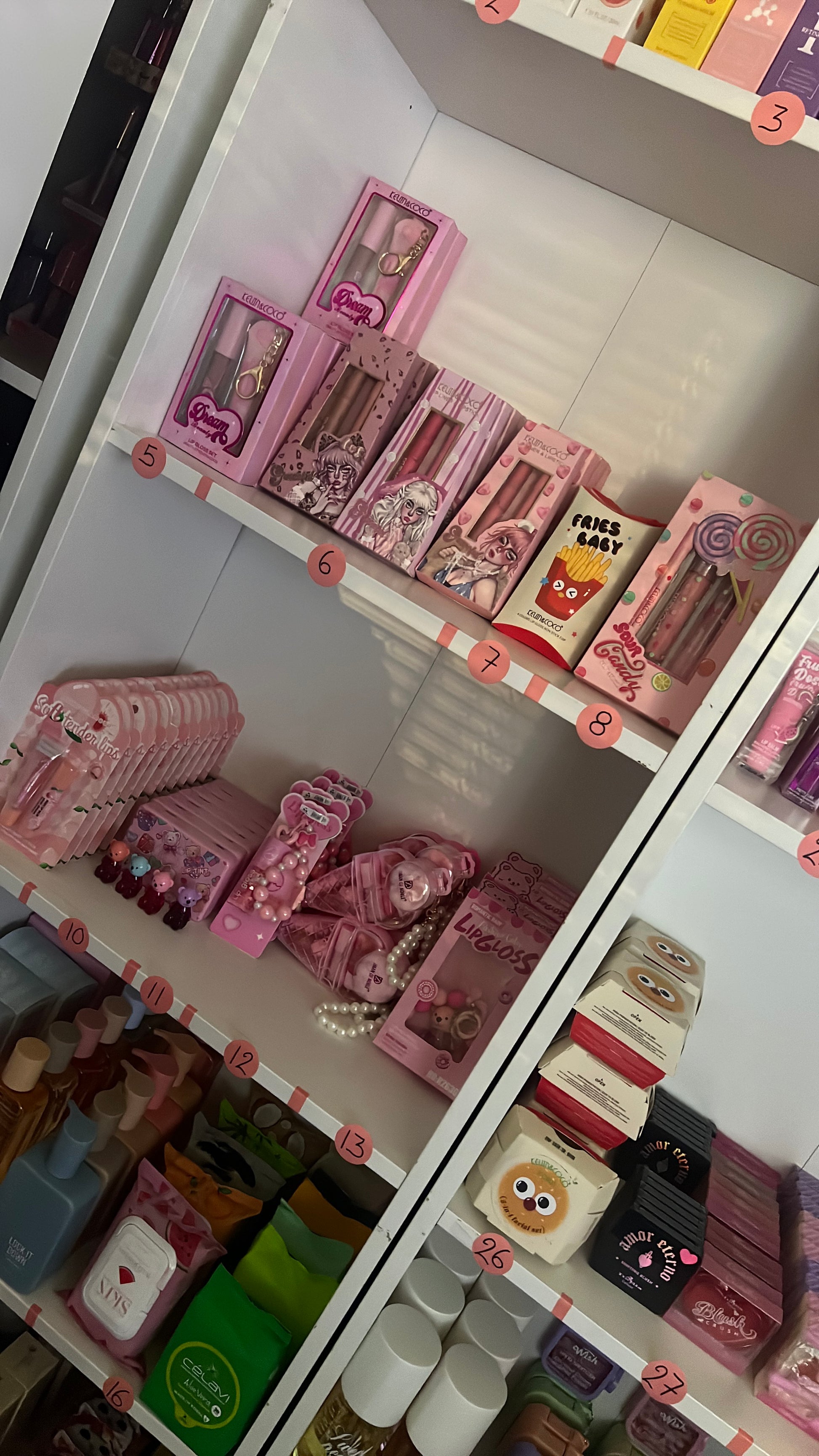 Cada bolita contiene adentro un número el cual te indicará que producto te llevarás, te pueden salir lip gloss, makeup, skincare y más…